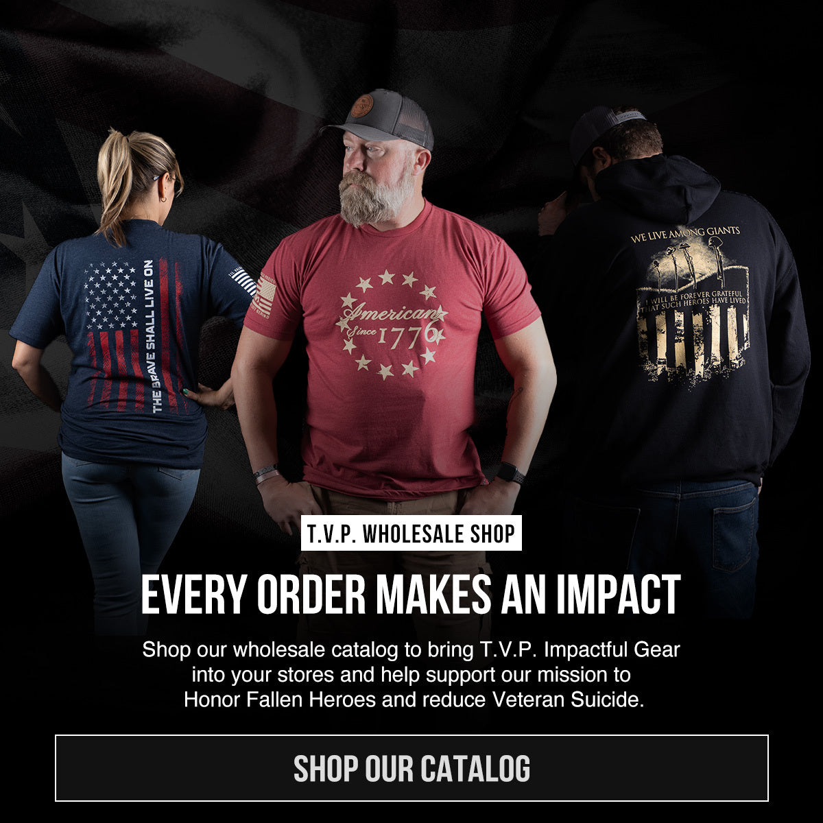 When you order T.V.P. gear, we hand-deliver free memorials to Fallen Hero families. You can't say that anywhere else.